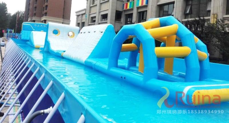 水上沖關(guān)所采用的支架水池是用高強(qiáng)度的環(huán)保PVC和國標(biāo)無縫鋼管組成的,可以極大地保證游客的嬉水安全。每個支架水池都配有自動化凈水一體機(jī),不間斷地進(jìn)行水質(zhì)處理,保證水質(zhì)安全,讓游客更放心。歡樂盛夏,水上沖關(guān)等您來挑戰(zhàn)。